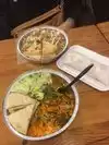 a delicious assortment of kati rolls, though a bit pricey. the chicken platter is bland but the paneer platter has flavor. love that they are open late!