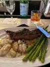 A perfect evening from start to finish! We arrived early and had a drink at the bar. I believe the bartenders name was Ray. He was attentive and we all enjoyed our drinks. We were celebrating my husband’s 60th birthday with two other couples. We loved our table (booth) and enjoyed bottle of champagne to begin. Ray had helped our friends arrange that without hubby noticing. The food was absolutely delicious. My husband and I enjoyed the tomato burrata salad. The burrata was nice and creamy. For mains our group had lamb chops, sea bass, Arctic char, scallops and filet bone in. We all loved our mains. The portions are very generous. Our sides were the lobster mashed potatoes (OMG - not usually a fan, but I’m still thinking about the, LOL), mushrooms (so good) and Brussels sprouts (yummy). The service was excellent. I believe our waiter was “LR”...water glasses always full (I always appreciate that), he was attentive in an unobtrusive way, but he made sure we all had what we needed through the evening. Our group has travelled together many times - my friend said probably the best dinner she’d ever had - great food and service!