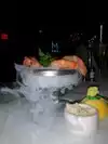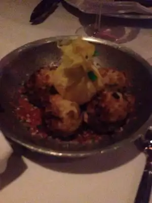 Dropped in here late for a "snack" and were surprised they sat us down at a restaurant table, rather than the bar area. The menu was very attractive, and while we were not that hungry, we ordered the seafood platter (comes with smoking bowl of dry ice) with oysters, srip, crab, and lobster. We shared some other dishes. We were not disappointed. The restaurant was also busy at this time. The men's room was downstairs and I was surprised to see how large the restaurant was, many tables and areas. We were lucky to find such a fine restaurant with great service and food!
