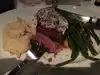 We arrived a few minutes early for our dinner and were told to wait for our table to be ready. We waited for over 10 minutes and it seemed they'd forgotten about us. We were then shown to our table. Upstairs it was very loud and more of a party atmosphere. Downstairs was quieter. My fillet steak was tender and cooked correctly. The sides were too salty though. The service at the table was good but not exceptional.