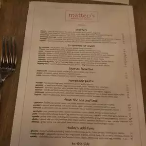Everything at Matteo's is divine: every dish, every morsel... the friendly, kind & helpful staff... makes dining at Matteo a lovely dining experience. Go & Enjoy!