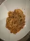 Had pasta with lamb ragout (with a fancy name, of course). Meat was good. Pasta i can‘t judge. Sauce very flat with no remarkable flavors. Waiters very attentive, but also too aggressive. When my peer had finished his dish and I had one or two spoons left, the waiter picked up my peers dish and offered with a gesture that he could wait for me to finish my dish. Had pistachio for dessert. A little too sweet, but with very fresh strawberries. Espresso mediocre.
