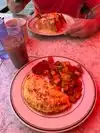 The Elvis Shake was a 12oz warm shake for $14. It wasn’t hot outside, it was 9pm but the shake was a warm ice cream when it got to our table so after a few drinks i wasn’t able to drink anymore. The food was phenomenal!! i had the french toast and hubby had pancakes while my daughter had the pizza squares. I also ordered the garlic fries which was also warm when it got to the table. The only thing hot was my daughter’s pizza. I would have like hot where it should be and ice cold (shakes) where it should be. We would come back again because of how good the feed was, but not ordered the sides/shakes 😊