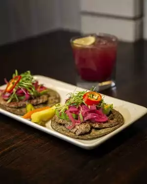 Just a fantastic evening. Delicious food, many options for both vegetarians and not. Super blood orange margarita, get there for happy hour! Friendly and helpful service.