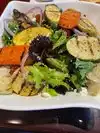 Grilled vegetable salad was made to perfection. Veggies were lightly grilled and served warm on top of a bed of greens tossed in a delicious dressing with feta, olives and sun dried tomato.