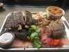 There is so much choice here and it all looks so good! We ordered pulled pork and full rack of ribs with sides of beans and mac & cheese, it was great and the BBQ sauce was awesome! It's a fast food restaurant not table service but the staff are friendly and food was ready quickly. Would recommend if you're a BBQ food lover and want a good choice of menu items cooked well, we would visit again.