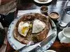 A very popular spot for lunch /brunch so be sure to arrive early or you may need to wait ....but the wait is worth it. For brunch we had Mediterrian crispy dough served with 2 eggs(any style you want), fresh tomatoes sliced, harissa and pickled vegetables on the side. Burekas ( puff pastry filled with feta, olives and labneh) served with Israeli salad and two eggs any style. Everything was delicious and all the food being served to other btables looked good as well. Our waitress couldn't have been more efficient or friendlier.