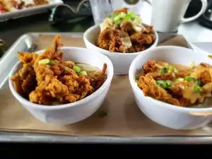 Wonderful 🥰. Went here for Sunday brunch with a friend. Service was great! Food came out quickly! Food was delicious! Drinks were awesome! No complaints whatsoever. Each worker we encountered was extremely friendly. Thank God. Made the experience so much more pleasant. There was a 45 min wait for a table and we arrived at 1pm, but it was well worth it. Will def go back again! We had the Cauliwings, shrooms n grits, sushi boudin balls and the gumbo. I also had the hibiscus mimosa. All dishes were solid! 100% vegan! Their music playlist is legit too!