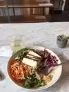 This place looks like it has some good "healthy" options for a light lunch and lots of items on this menu look great. I had the Curry Salmon bowl and was hoping to be at least warmed.. but the veggies were cold and more surprisingly the salmon was as well.. also the salmon was very dry and crusty. The curry sauce was mild and quite good. I think this dish would taste so much more if the salmon was fresh and veggies were warmed. Service was very friendly but it took a while to get the meal.