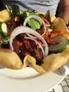 This is a cute spot that is clearly very popular . We shared the guacamole, it was the freshest nicest one we have ever had with a spicy kick. We also had the taco salad with chicken and served in a pasty dish plus a salad with goats cheese croquettes . Plus all washed down with fresh lemonade . Well with a visit.