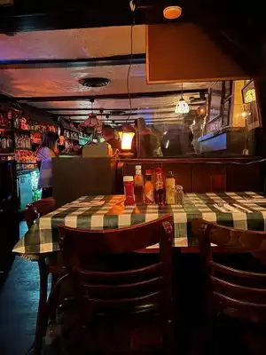 I live in the neighborhood and love having this place nearby. Great for nightcap or place to rendezvous for the evening. Sawdust on the floor, dark wood, dimly lit, fireplace/wood burning stove, all around great cozy vibe especially in the wintertime. Makes you feel like you've gone back in time to old New York. Bartenders and servers can be gruff but under that rough outside they're really friendly and attentive. Definitely must stop in here if you're in the area.