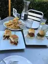 We had lunch here. We stopped to look at the menu to see if there were any vegan options for my daughter. The host told us there wasn't really anything on the menu, but they would whip something up for her. The chef made her a delicious veggie and rice dish with an olive tapenade. I had the chicken pear salad (would recommend) and strawberry basil lemonade. My husband, son, and youngest daughter claim the fries were "the best they ever had." I don't know why the fries were so special, but they all made this claim.