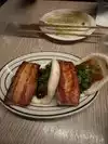 The ‘buns’ are not bao, they're large sliders (2 per order); the seared shrimp features a somewhat rubbery patty formed from shrimp - could use some flavorful sauce. Ginger scallion noodle bowl is not very gingery, not complemented well by cold raw carrots, cucumbers and seaweed. Very crowded/loud (not great ambiance).