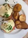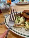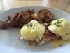 Perfect brunch spot, highly recommend. I got the Benedict Burger, and I had some of the salmon dish. Everything was delicious.