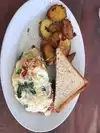 We went there with a friend who made the reservations since we were visiting from out of town. It was really nice dining outside on a beautiful sunny day under an awning. There were a lot of breakfast items, but we each decided to get a 5 egg omelet. It was huge and we were not able to eat it all. The toast was sourdough and the jam appeared to be homemade. Coffee was very good and the prices for the breakfast items were reasonable.