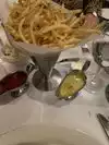 Was in the city and decided to pop in at Morton’s Steak House since we were right near the restaurant. I order the Filet Mignon Tenderloin Sandwich. It was okay the meat was tender but lacked flavor. Barely tasted the horseradish cheddar on the bun. It wasn’t salty so that’s a good thing. The string fries were not hot but they did have a crunch to them. Also, comes with a iceberg lettuce and a tomato on the side. Sooo wanted a stellar savory filet Mignon sandwich but it didn’t happen. They do give you a tasty round loaf of onion bread that came out nice and warm. Sat in the bar area since we didn’t have a reservation. Overall, I wouldn’t go back for the sandwich but for the amazing steaks that were passing by and the soup!