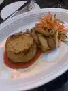 Great ambience for a memorable event. Portions are generous (better be !! For the price). We had the crab cakes which had generous chunks of crab. The ribeye was exquisite. All the plates were well constructed, presented and tasty. Dessert was crepe brûlée and was also perfect. As mentioned the ambience of the place is great. Get early to get some great pics during the evenings and the night.