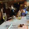 My husband and I took my adult daughter and her boyfriend to dinner out to celebrate her birthday. The ambiance of the old ship is so special. We enjoyed walking upstairs and viewing the historic photographs and going on the deck to see the masts - lit up colorfully. The sloped deck made it especially interesting to sit at the indoor table. They gave her a free slip of champagne and a free dessert plate for her birthday! The meals were all very, very delicious.