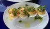 Sat outside on a beautiful summer evening and loved the vibe, ambiance, and great service. Www as underwhelmed by the mixed green salad and deviled eggs. My friend did like her salmon. Desserts were pretty tasty, though.