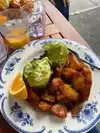 So goood! Fresh and beautifully presented on the plate. Large portion, very tasty. Big pleasure to sit outside in the sun! The service isn't overly friendly, but they do a good job. They're quick and always there when you need them.