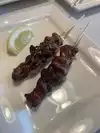 Tasty skewers of grilled meat. The grilled rice ball was delicious as well. Lots of variety. Great atmosphere. A must-visit.