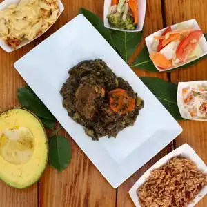 Delicious, flavourful food which we enjoyed in a peaceful garden setting. Mine was a selection of vegan dishes and absolutely wonderful and my husband had the curried goat. We’ve never had Haitian food before but it was fantastic. It was also not expensive and the portions were huge. Highly recommend.