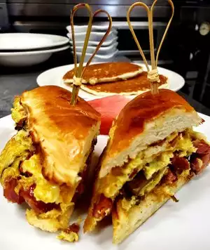 We actually found this by searching Trip Advisor. I ordered their french toast - the bread is sliced very thick, and you would think it would be dense - but it was the lightest french toast I've ever had. My wife and son had eggs - which were "ok" - but the accompanying pancakes were terrific. Suggest staying with the pastries, pancakes, waffles and french toast. They also serve their lunch menu during breakfast hours. We were here on a Sunday morning (9:30am) - we were expecting long lines, but got lucky and were seated right away. I understand usually there are long lines waiting for a table on weekends. We'll definitely be back next time we're in the area.