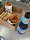 It was great to go. I had the hotdog that tasted like any other. The fries were good. Prices on the high side for a hotdog. The have chicken, seafood, and burgers too. The seating is AWFUL for the customers that are served. I refused to sit out in the cold. After paying almost $40, WE stood up and ate just like everyone else. Can I just have a seat...