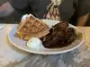Nice vibe. Good service. Food was good (I had waffles and jerk chicken) out of 8 people only one person had an issue with their food and sent it back for another dish. The manager Tasha came out very aggressively and rude. Not proper customer service, was yelling and questioning everyone at the table. I’ve never experienced anything like that and will never return to this restaurant. Good but not great Jamaican food somewhat pricey for portions size.