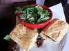 I had a Greek salad and a bowl of black bean soup. The salad was huge and the soup was spicy and delish. Hubby had a steak sandwich. He was it was very good. Priced for families, nicely decorated, and good food for a national chain.