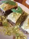 Great sampler platters, awesome fresh pita bread! Vegan friendly. Peanut butter chocolate chip baklava! Great friendly staff! Will definitely return when we are in town again!