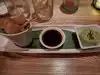 The place is nice, more modern looking than usual sushi places. We have several Japanese sushi restaurants in our area, but this restaurant has a different selection. Thus, we discovered terrific Japanese food. The portion was adequate, and the taste was delicious. Their green tea was fantastic to go along with your meal. The ambiance was just fine. Everything, just everything here, was perfect. The service was impeccable. Our server, Sergii, was so lovely and polite. Sergii answered all our questions and was very pleasant. We asked for extra sauce, and he was pleased to accommodate our requests. We were happy to be here and very much appreciate the service and atmosphere of this place.