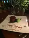 We were greeted kindly at the door and directed upstairs to the dining area where we were once again greeted kindly. The waiter's and server's were very attentive from filling our glasses with water, to having my napkin refolded when I went to the ladies room, and swiftly removing the plates when we were done. I received a lovely surprise with a platter of chocolates with 1 candle with Happy Birthday written in chocolate. I will definitely return....Thank you for the beautiful experience!
