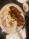 Had noodles and chicken. Noodles were a bit oily, chicken tasted boiled. Not much flavor. Husband had the beef and said it was good.