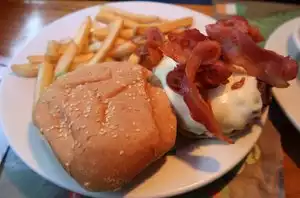Great food, reasonable prices, fast service. It had a great atmosphere, it is decorated with police and fire patches from all around the world. Would definitely recommend.
