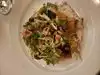 Selection of fresh seafood choices from different regions of the US delicious and well prepared. The calamari had a nice bite and oriental style. The halibut was complimented bt the the delicious vegtables and was perfectly prepared, The lobster pasta was excellent as well..Service was friendly and attentive.