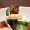 I had the hummus plate which consists of their homemade hummus (wonderful), warm pita, and veggies (carrots, celery and broccolini). Everything was fresh and good. This is the freshest and best hummus plate I have had anywhere in the country. I noticed from the menu that they offer some interesting and unusual flavor pairings. For instance, the Queso Americano comes w/fried won tons rather than tortilla chips. The Buffalo Mac is fried chicken w/buffalo and macaroni and bleu cheese. We sat outside for lunch on a beautiful Spring day, and yet the service was still very attentive. Sometimes the patio gets ignored, but not here. The seating is umbrella covered picnic tables which seat 4-6 persons. There were no smokers, but there were a few dogs. I would eat here again, and I would recommend it to my friends.