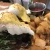 Great vibe in and around restaurant, Very busy on Saturday morning. We pulled the move we do a lot with restaurants that have a bar. "Can we eat at the bar?" Our 1 1/2 hour wait turned into a seat at the bar in 10 minutes. Jenny at the bar was fantastic. Great bartender and very helpful with ordering (this was our first visit). We had high expectations due to reviews and unfortunately we were disappointed. The Eggs Benedict had been pre-made or sat too long in kitchen. The egg yolks were solid and the meat was over done. I think in an effort to have speedy service for patrons the food was compromised. We will try again.