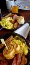 Great opportunity to meet Pluto and Mickey Mouse - and others! Mediocre breakfast skillet of sausage, bacon with sweet jam topping, sliced potatoes and scrambled egg - and a sweet scone. We asked for butter which came immediately. We could have eaten as many skillet-loads as we wanted! Unfortunately I do not have a sweet tooth, but my husband enjoyed the sweet bread, ultra-sweet juice and Mickey Mouse waffles with maple syrup. Major complaint was that we waited (along with many other folks) half-an-hour for a reservation which we had made months ago - with no apology.
