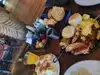 Don't cone if you want a slightly healthy breakfast or have kids with allergies. 17 waffles between 4 adults and 2 kids. Far too much food. Kids ate fruit. They were served waffles and a sugar filled donut. They didn't want any of it. Ham was coated in something sweet. Far too much unhealthy food. Characters cake round a couple of times albeit quickly as they have to get round a full restaurant. Been here done it wouldn't come back