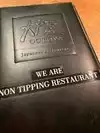 I ate here with some work colleagues. We had a table in the back corner. It was great for the space but lousy for the service. At times it felt like our server forgot about us. They would come back to refill water glasses but ignored the refills for the soft drinks. We had to finally ask for more. The food was good. I had the Kaage which was fried chicken with garlic flavoring. It came with rice, pickled carrots, miso soup, and a small salad. My colleagues had the Spring Gozen and the Sukiyaki. The advertising was true about not accepting a tip. There was no line for a tip on the bill and even though I left a tip, I was not charged for it. I gave the lady at the coat check a couple of dollars and she seemed totally surprised and awkwardly received it.