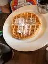 All the food is good here, but the grilled calamari is wonderful. Their Belgian Waffles are super, too. It's a small space, but has a charming outdoor seating area. Good variety on the menu.