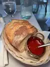 Came here for dinner and it was great! Great cozy spot in the Meatpacking District, perfect for walking around after. I really enjoyed the fresh bread they brought out at the beginning which was warm and fluffy and served with a delicious tomato oil! I enjoyed a nice glass of Sauvignon Blanc to go along with my pasta. I got the Cacio e Pepe which came in a Parmesan wheel which was a great presentation. I wish they scraped more of the cheese along with the pasta because it is so delicious. We added burrata on top and it was perfectly creamy. Would dine here again, especially for their happy hour!
