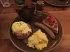 The atmosphere is a modern country with wood everywhere. The service was impeccable from start to finish. We were there for breakfast and all ordered from the buffet which was more than adequate. Eggs Benedict were excellent as well as the potatoes, bacon and charcuterie... would recommend.