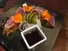 I had a crispy pork and it was fat back , yep that's it fat ! The stuff you add to flavor food really bad! The we got the soft shell crab ! It was a baby crab fried and cut in half ! Then we tried our halibut , that was a beautiful peice of fish , but over sauced and way over cooked, the person next to me had ordered salmon... What a shame to see it cooked to death and she was grinding salt all over it to eat it( mind you that I don't know her she was with another party )