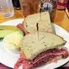First, the open-faced Reuben is a winner! However, bring the wallet--think $24 for the sandwich, pickle, and slaw. Simple dining area, and we had entertainment from the quirky clientele and workers. Disappointed that there was no pumpernickel in a Jewish deli for my adequate egg salad sandwich. Too many other restaurant choices to return here.