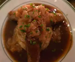 After several days of dining at upscale ( =$$$$ of course) all weekend, we were more than ready to go more low key, but still near our hotel in mid town Manhattan. We were not disappointed. We started with apps. I had the soup of day: chicken barley. Served steaming hot and full of flavor. Perfect for this cold winter night. Husband ordered the Philly cheese steak egg rolls. He described as crisp and very tasty. I had the Molly salad and added shrimp, which I asked to be blackened. Oh the chef definitely added some heat to that. No complaints here. Husband had the beer- battered fish and chips. Now, he is absolutely a fried fish and French fries connoisseur. I usually take a taste test as well, Holy cow! This beer battered fish was moist and tender, the batter was perfect! Not over- done, not too thick, just crunchy. Our server, Kelsey, from Ireland, is spot on and knows her stuff. If ever in midtown/ Hell’s Kitchen/ Carnegie Hall/ Central Park South area, looking for a reasonable priced local feeling pub, try P.McDaid’s Irish Pub will not disappoint!