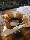 I always like a restaurant that welcomes dogs, and this one does. Outdoor and indoor seating. Friendly prompt service. We had their fried pickles (THE BEST I'VE EVER TASTED!) and a steak and cheese flatbread (tasty but needed hot sauce to perk up the flavor) Reasonable prices.