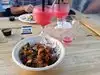 I had 2 shrimp tacos. Fine but not delicious and pricy ($6 each) for 1.5 pieces of shrimp inside. Mango Tango tasty but took ages to get a coffee. Server pleasant but I won't go again as feels more like a night club with a deck. Nice view on deck but not many comfortable seats for older people outside