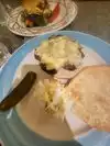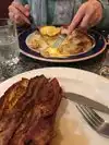 Had breakfast- bacon, pancakes and sunny side up eggs. Bacon was undercooked and needed to be sent back to get it crispy. Other than that it was a diner - nothing great. Nothing terrible.
